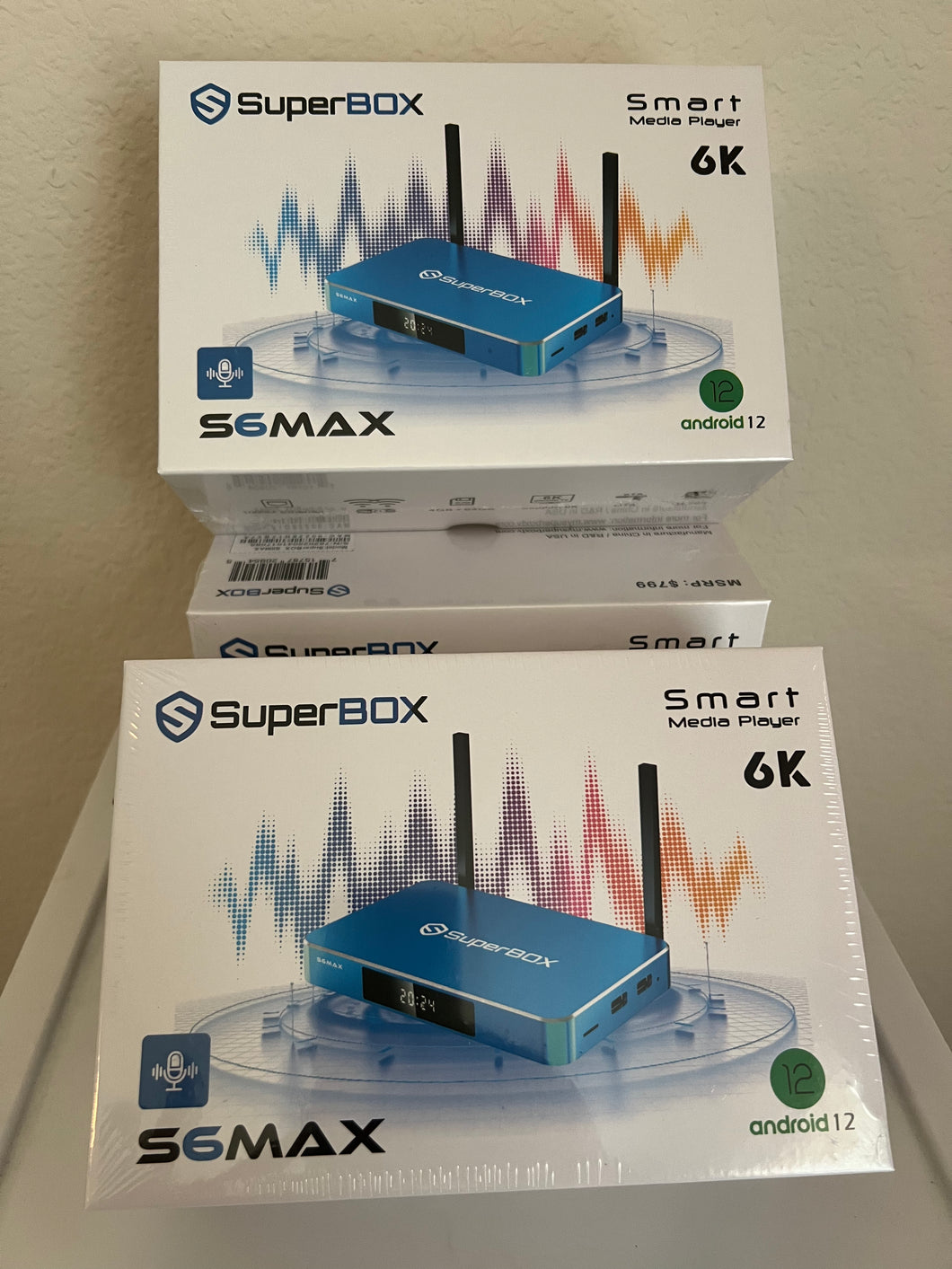 The NEW SuperBox S6 Max MediaPlayer Box is a blue-colored TV box with a Quad Core ARM processor and Dolby Digital surround sound. It supports HDR10 media format and offers a maximum resolution of 2160p. With 64GB of storage capacity and Android 12 operating system, this 6th generation unit also features Bluetooth connectivity, Wi-Fi, voice control, and a keyboard controller. The SuperBox brand ensures quality and reliability, making it a great choice for entertainment and multimedia needs.